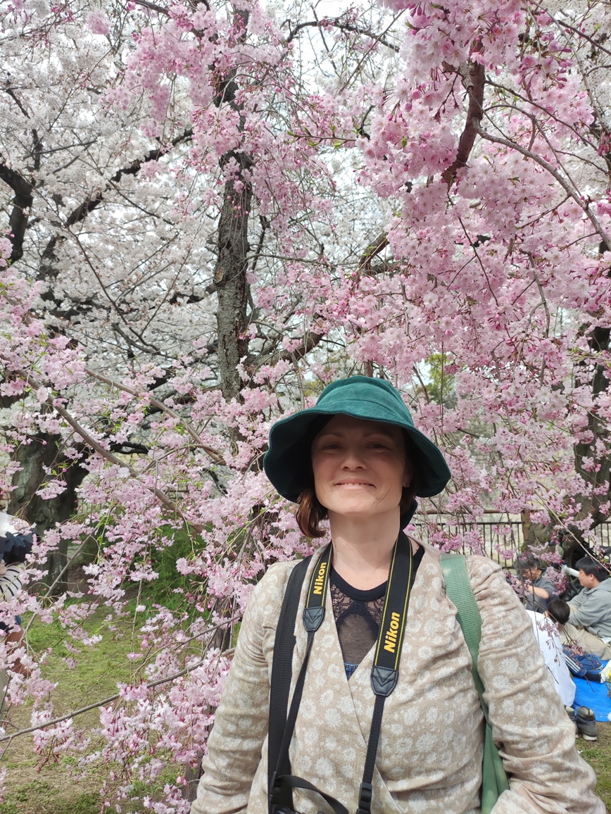 A danas, kada se prakticira i nešto što je poznato kao „yozakura“, a odnosi se na noćni ili kasnovečernji hanami, uz dekorativno osvjetljenje cvjetova u parkovima i na povijesnim lokacijama, ispod trešanja sjedi se, uživa u pikniku i pozira za fotografije. Poziranje nije zaobišlo ni mene – dokaz su fotografije nastale već prvog popodneva mog boravka u Japanu u travnju 2024. Čak petnaestak mojih portreta ispod jedne viseće japanske trešnje, shidarezakura, u parku oko dvorca u Osaki, napravila je mojim mobitelom jedna mlada žena u želji da u Europu ponesem što ljepše uspomene, bez obzira na i više nego vidljive tragove jet laga na mom licu… Nasreću, pažnju, osim shidarezakura, odvlače i „oblačići“ trešnjinih cvjetova vrste somei yoshino, najpoznatije i najrasprostranjenije na nacionalnoj razini te najbrojnije u istom parku, gdje se nalazi oko 3.000 stabala ukrasnih trešanja. Na istim se fotografijama naziru dijelovi prostirki za hanami plave boje.