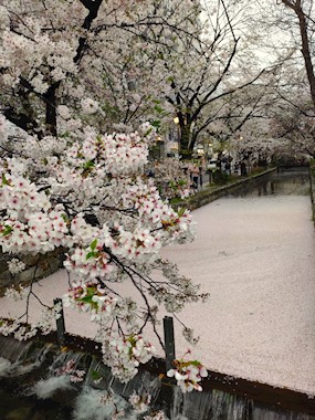 Riječ je o trenutku koji se naziva „sakura-fubuki“, a prevodi kao „(snježna) oluja latica“: označava latice koje nošene vjetrom padaju u obilnijim količinama. Postoji i „sakura-ame“, kiša trešnjinih latica… Padaline će, uz neizbježni protok vremena, stvoriti još jedan mirakul koji je Japancima poznat kao „hana-ikada“, odnosno „splav od cvijeća“, a podrazumijeva površine rijeka, potoka i jezerca prekrivene laticama trešnje. I tako završava sezona hanamija u Japanu. Kao i ovaj kratki vodič kroz leksik cvjetova sakure. (Napisala i snimila: Tanja Škopac)