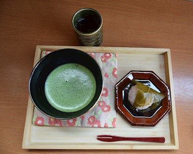 Što se jelo? Ne znam vam točno reći, budući da ni inače nemam naviku gledati u tuđi tanjur (dobro, možda ponekad pogledam u doslovnom smislu, ali u prenesenom ne), ali poznato je da se u sličnim prilikama u kutiji bentō, u koju se upakira obrok „za van“, nađu specijaliteti nadahnuti razdobljem godine koje se slavi. Ili barem boje odabrane hrane moraju odgovarati proljetnim tonovima. Poput roza boje kolačića koji su poznati kao „sakura mochi“, a rade se od glutinozne riže iste boje. Pune se marmeladom od slatkog graha azuki (anko) i umataju u list trešnje koji je upravo za te potrebe konzerviran u salamuri. Savršen su „dodatak“ šalici matche. Istu sam kombinaciju i ja odabrala u Kyotu, gdje ćete naći verziju mochija regije Kansai koja je poznata kao „domyoji“, što je i ime hrama u prefekturi Osaka u sklopu kojeg je počela proizvodnja brašna koje se koristi za istu vrstu mochija.