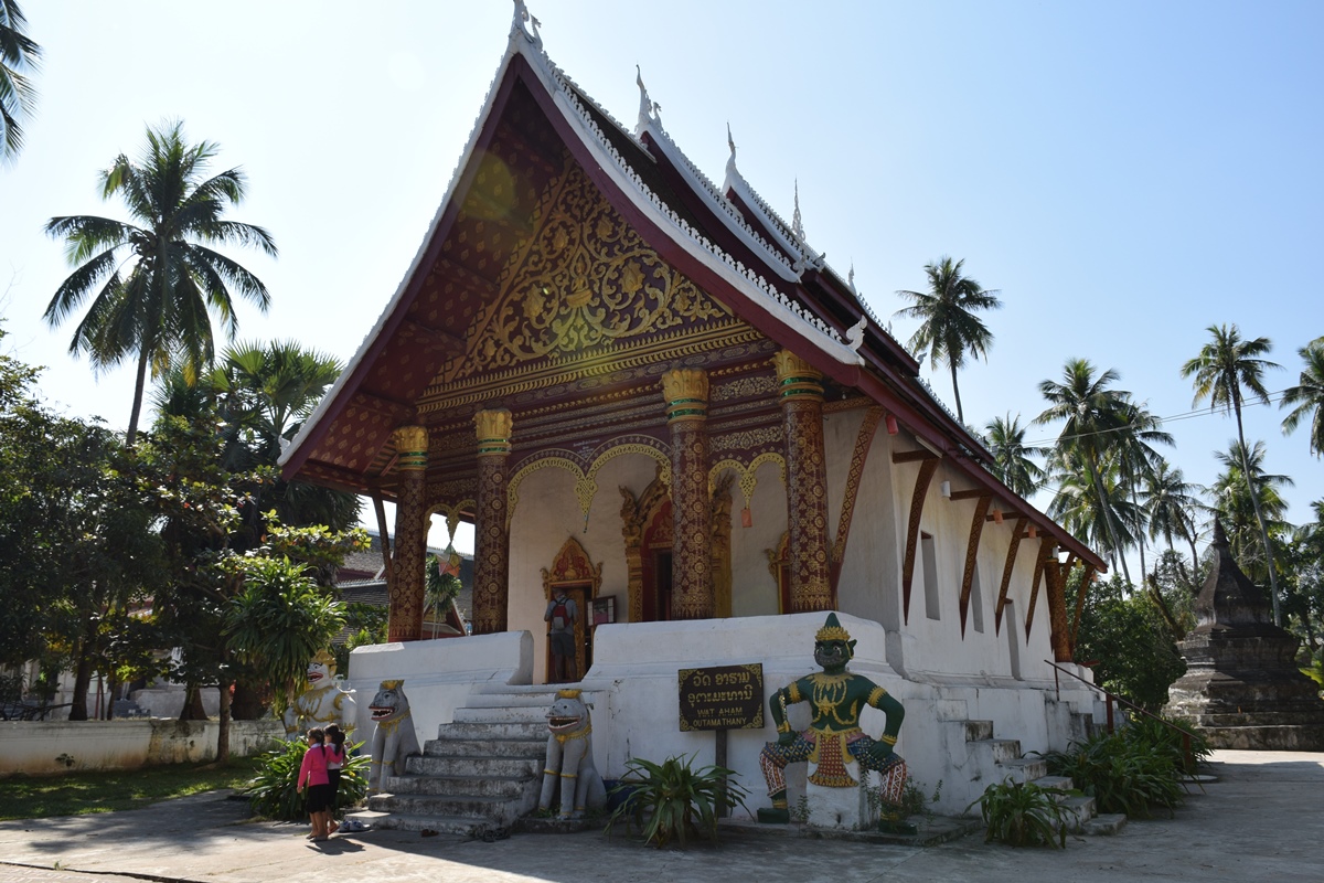 U blizini moga guesthousea bilo je više hramova. Među njima i Wat Aham. Sagrađen 1818. (prema nekim izvorima ranih 20-ih godina istog stoljeća) na mjestu na kojem je u 16. stoljeću postojao neki drugi hram, ovaj je „vat“ poznat i pod nazivom koji se može prevesti kao „hram otvorenog srca“ te je, poput mnogih drugih „vatova“ u Luang Prabangu, okružen predivnim palmama. Tijekom mog prvog posjeta bilo je još dva-tri turista koji su istraživali ovaj dio Luang Prabanga, što je znanstvena fantastika u odnosu na neka druga odredišta u jugoistočnoj Aziji ili u Japanu, gdje ćete naići na rijeke ljudi i korisnika društvenih mreža u potrazi za savršenim kadrom za svoj profil.