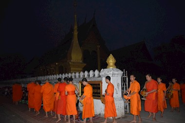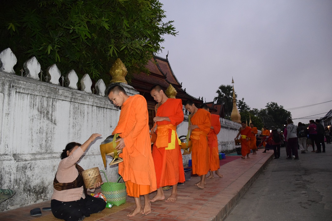 Nešto malo laktarenja i upadanja u kadar doživjet ćete u blizini ovoga hrama, i to ako odlučite prisustvovati obredu kojim počinje jutro ovdašnjih budističkih redovnika: skupljanju milodara (uglavnom kuhane riže) od vjernika i posjetitelja na ulici, što u prosincu počinje negdje oko 6 sati ujutro. Među njima ima i mnogo mladih redovnika, koji uglavnom potječu iz siromašnih obitelji. Njima je služba u hramovima prilika da se obrazuju. Većina ih se u odrasloj dobi, nakon završetka obrazovanja, vraća svjetovnom životu u nadi da će zahvaljujući stečenom obrazovanju moći odabrati neko drugo zanimanje.