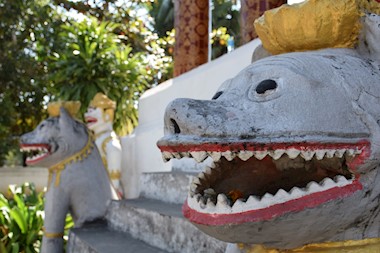 Neki od tih mlađih se tijekom dana, u želji da s turistima prakticiraju engleski, skiću po šumi na svetom brdu Phousi, u samom centru Luang Prabanga, za koje jedna legenda kaže da ga je indijski bog majmuna Hanuman ovamo „donio“ sa Šri Lanke nakon što ga je jedna laoska princeza zamolila da joj donese gljive kakve je okusila na tom otoku.
