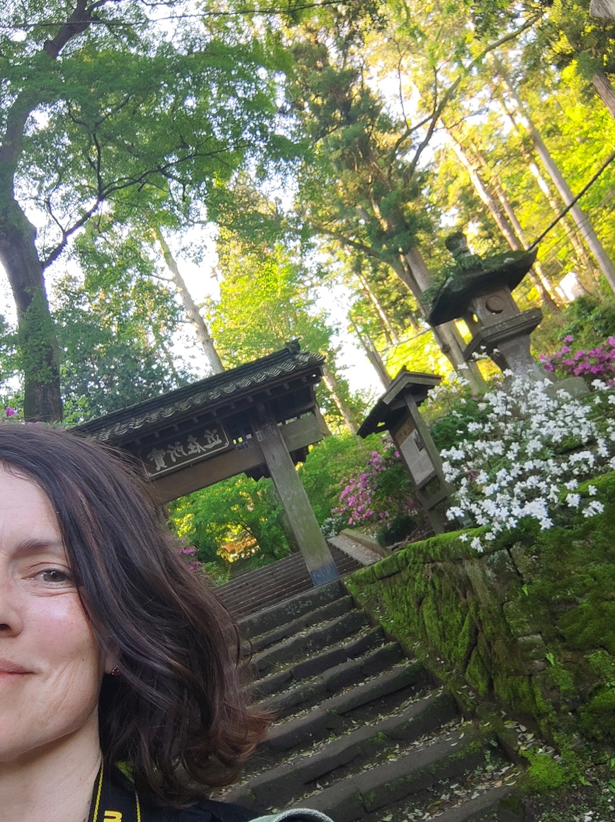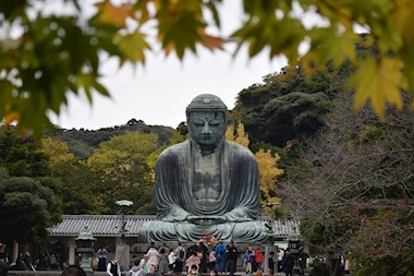„Enchanting smile of the East“, napisao je Hearn u opisu ovoga Velikog Bude, koji, osim tog očaravajućeg osmijeha Istoka, kako stoji i u knjižici s podacima o Kotokuinu i Daibutsuu koju sam kupila u istom hramu, ima i oči boje safira, ali i obraze s tragovima pozlate. Dosad sam ga uživo vidjela dvaput, u jesenjem i proljetnom ruhu, s time da sam u travnju 2024. malo zakasnila za najpopularnije sorte trešnjinih cvjetova: u cvatu je u sklopu kompleksa još bilo jedno stablo kasne trešnje, yaezakura, s višeslojnim laticama, a živahnije su bile tek procvjetale azaleje. Drugi posjet hramu nije mogao izostati budući da prvi put, 2022., zbog tada još uvijek važećih restrikcija uvedenih zbog koronavirusa, nisam mogla posjetiti i unutrašnjost kipa Velikog Bude. Taj je dio hrama tada bio zatvoren.