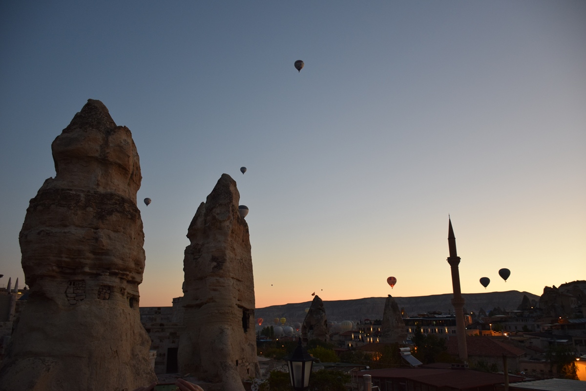 Letjeli smo do 900 metara u visinu. To je maksimum dopušten za turističke letove balonom u Kapadokiji, potvrdio je naš kapetan. Ionako nadnaravna mjesta koja ovdje možete posjetiti dok ste „prizemljeni“, poput Doline golubova, Doline ljubavi, Crvene doline, ali i starog dijela Göremea, iz ptičje perspektive u vrijeme svitanja izgledaju još manje ovozemaljska. A budite sigurni da vas iz hotela u gradu okom i objektivima prate i oni koji su balonom letjeli dan prije. Ili će to, ako budu imali sreće, učiniti narednih dana.