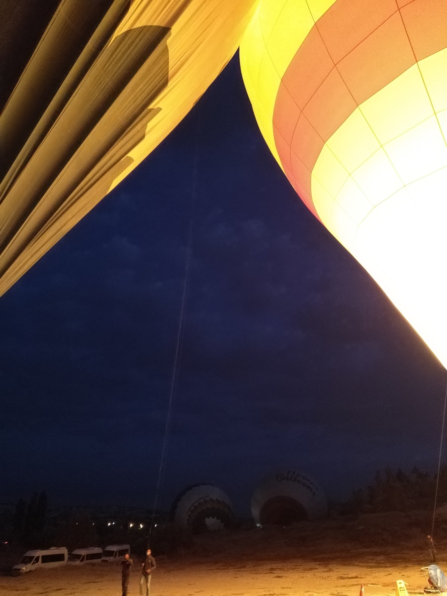 A kako izgleda čitavo iskustvo? Tura je meni počela nešto iza pet sati ujutro. Osim leta i certifikata, uključuje i prijevoz iz hotela do ravnice iz koje se polijeće i natrag do smještaja. „Punjenje“ balona trajalo je oko 15 minuta, a sve je spremno za ukrcavanje kada se balon „uspravi“. Košara nema vratašca, kao što sam ja, iz ne znam kojeg razloga, očekivala, već se u nju morate popeti pomoću nekoliko otvora za stopala na samoj košari. Ne znam ima li i balona koji su prilagođeni za osobe s invaliditetom.