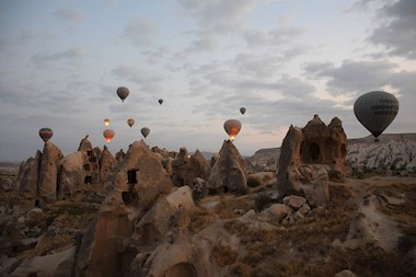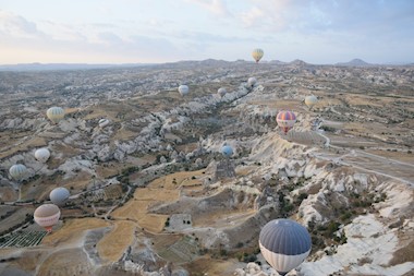 „Balon ću spustiti ako mi platite“, našalio se pilot naše letjelice u trenutku kad se košara s nas šesnaestero putnika odvojila od zemlje. Priopćio nam je to par sekundi prije nego što nam je, u istom raspoloženju, pustio pjesmu „My Heart Will Go On“ iz filma „Titanic“. U Kapadokiji se balonom na vrući zrak leti u vrijeme izlaska sunca, odnosno kada to vremenske prilike dopuštaju. Želja mi je bila da letim već dan nakon dolaska u Göreme, ali je te srijede vjetar bio nepovoljan: brzina mu je bila veća od 15 kilometara na sat.