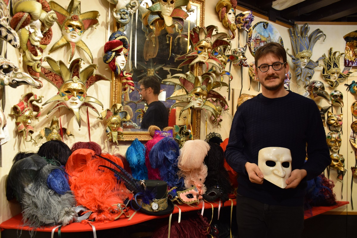 “Ljepota ovoga posla je u tome što nije rutinski“, kaže Davide Belloni, koji i sam sudjeluje u izradi maski. Iako je kao 19-godišnjak, nakon završene srednje škole, bio odabrao neki sasvim drugi put, i to u inozemstvu. Diplomirao je međunarodne odnose. Nikada nije ni pomislio da će se vratiti u Veneciju, iz koje je „pobjegao“, među ostalim, i zbog prevelikog broja turista. „Sada je puno gore nego tada. No, usprkos masovnom turizmu, u Veneciji je ipak kvaliteta života prilično visoka. Nema, primjerice, automobila, pa se ovdje živi gotovo kao na selu, iako se radi o jednom mjestu koje je vrlo važno i koje svi poznaju“, kaže Davide.
